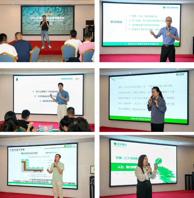 紧跟辅材行业新风向,亿固集团各大金牌导师以专业的企业文化与战略、首席品牌官运营、产品知识讲解、新商生存之道、渠道运营、大板铺贴落地交付服务、抖音同城引流等全方位赋能,助力新商团队高效消化培训技能,不打无准备之仗。
