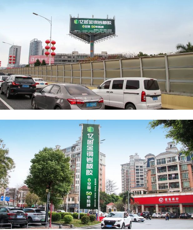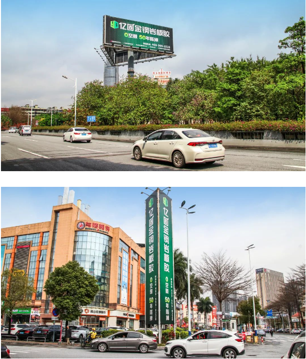 作为建材辅料行业的隐形冠军企业,亿固加团前瞻部署,精准投放,在佛山多处重要通道投放户外广告,体现了品牌优势和实力,扩大了品牌影响力,更能直接触达目标受众,将品牌信息传递给潜在消费者,实现品牌宣传的最大化。